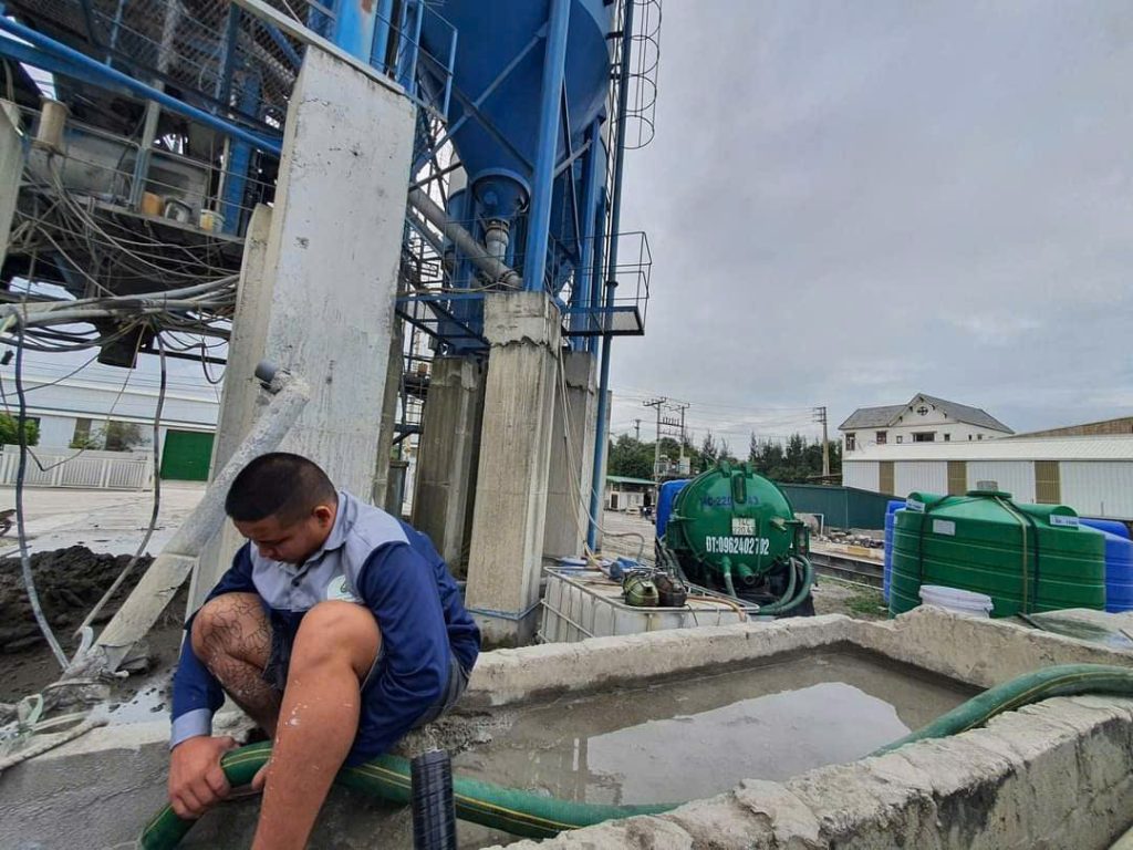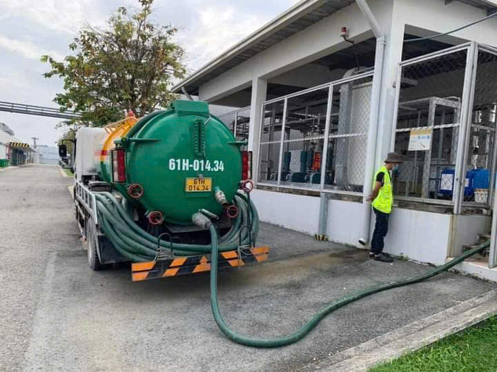Tiến hành hút chất thải bằng hệ thống bơm hút chân không, sạch sẽ, an toàn.